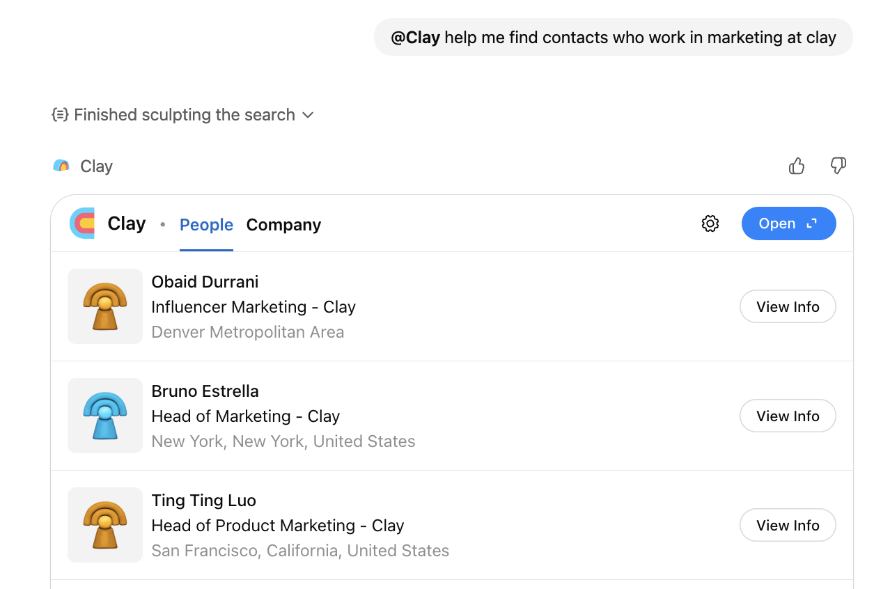 - It's specific to what Clay does (search for relevant contacts)